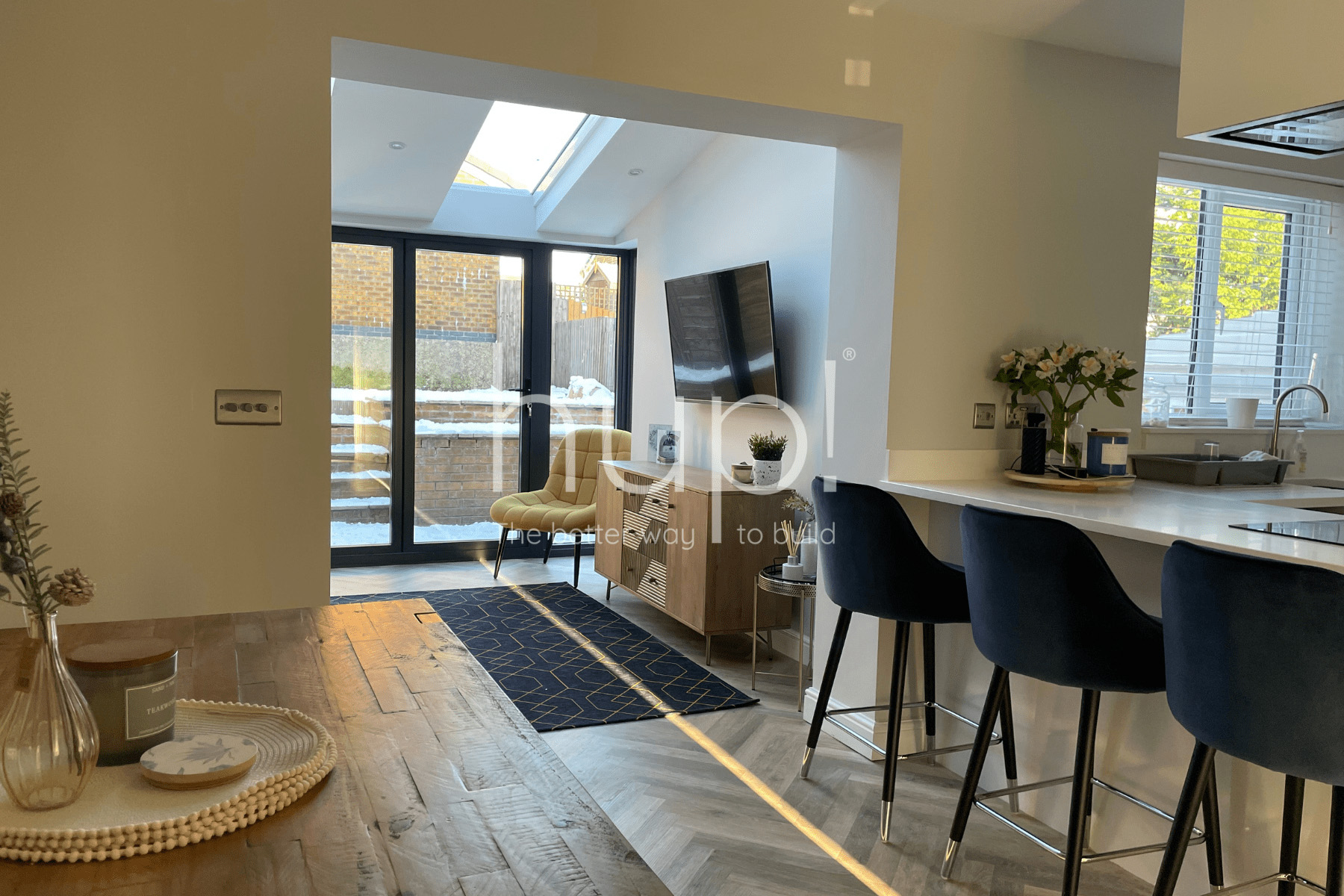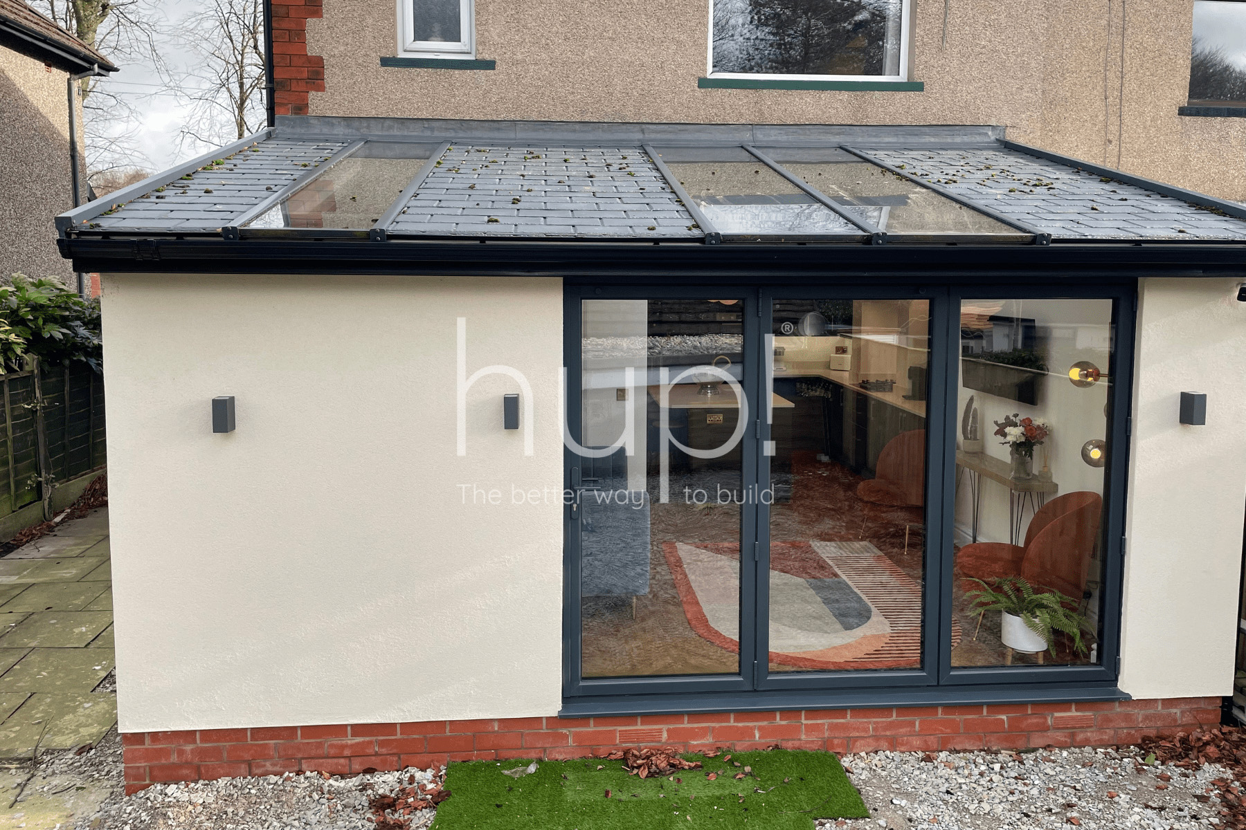 Thanks to hup!’s clever interlocking components and rapid connection technology, we can complete your extension or conservatory in a fraction of the time of traditional builds (up to five times faster)! That means far less disruption at home and a beautiful new living space ready to enjoy sooner.